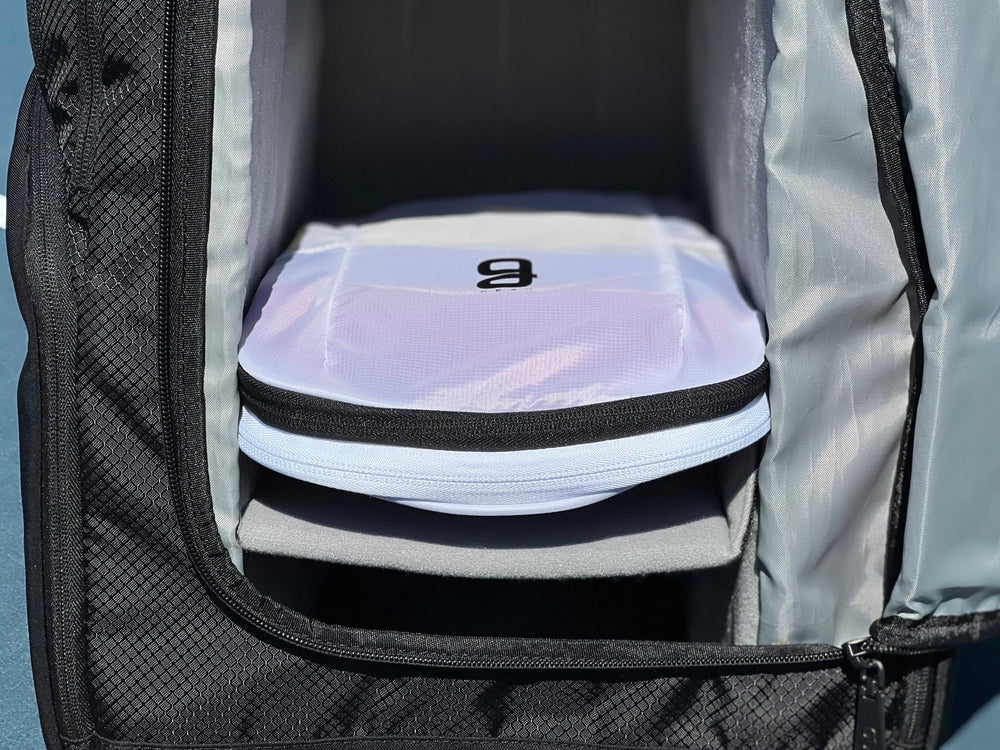 The Axiom Compression Packing Cube expands and compresses to maximize the packing space inside your tennis bag. It features a semitransparent material to see what’s inside while still being discreet. Designed to quench your obsession with organization.